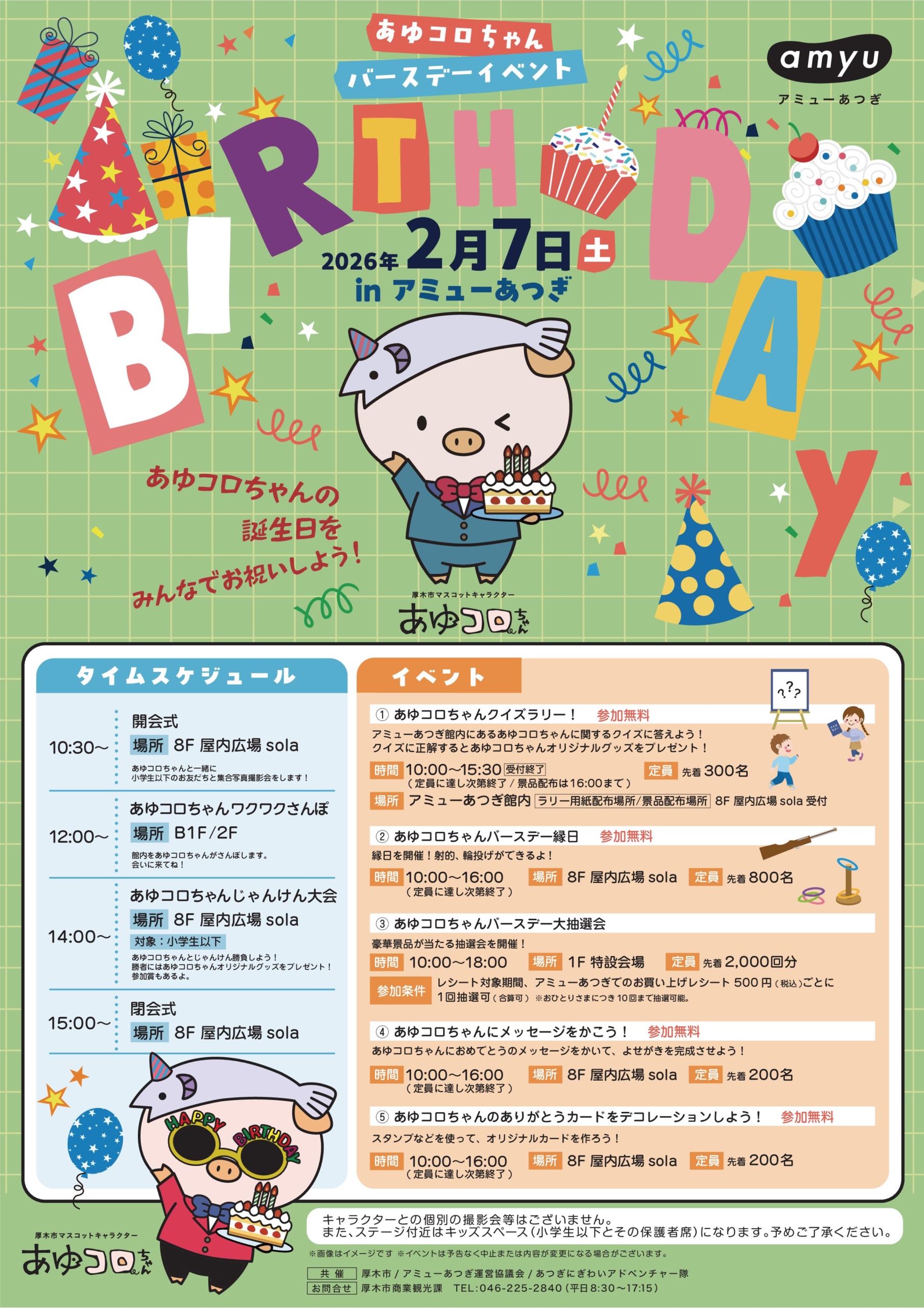 あゆコロちゃんバースデー大抽選会も開催いたします!