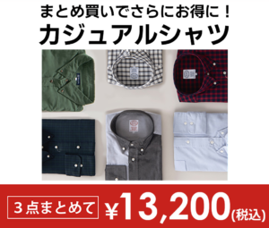 大好評だったカジュアルシャツのまとめ買い3点で¥13,200(税込)をこの秋も開催します!!