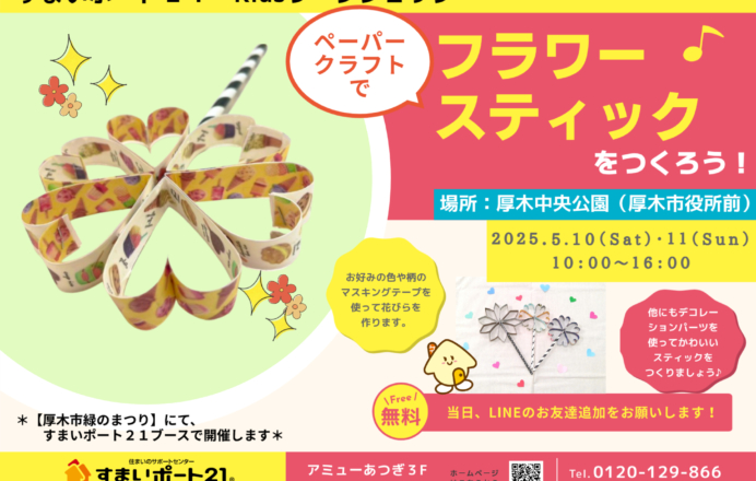 すまいポート21の5月の工作イベント「ペーパークラフトでフラワースティックを作ろう」開催!